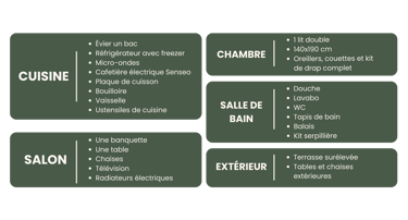 Les animaux domestiques sont les bienvenus (2 maximum par location) : vaccinés et sous contrôle de leur propriétaire, ils ne doivent jamais être laissés seuls. Un supplément par animal est appliqué.