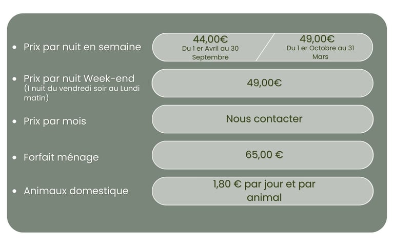 Pets are welcome (maximum 2 per rental): they must be vaccinated and kept under their owner’s control, and must never be left alone. An extra fee per pet applies.