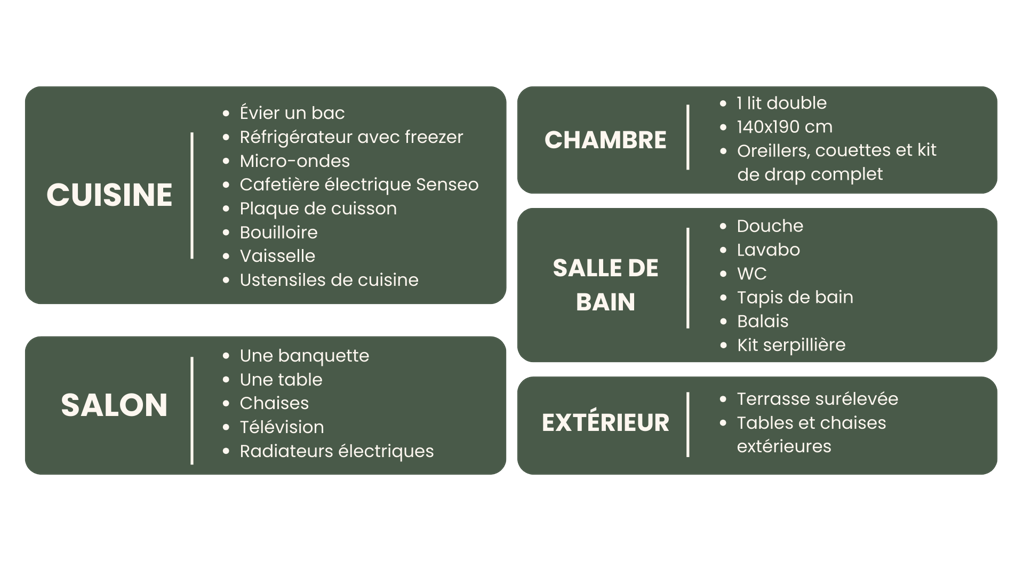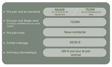 Pets are welcome (maximum 2 per rental): they must be vaccinated and kept under their owner’s control, and must never be left alone. An extra fee per pet applies.